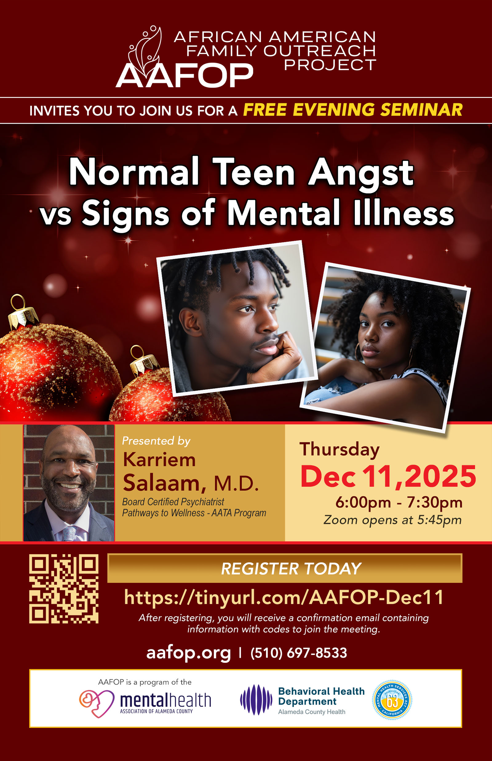 – Event facilitated by Karriem Salaam, M.D., a board certified Psychiatrist.